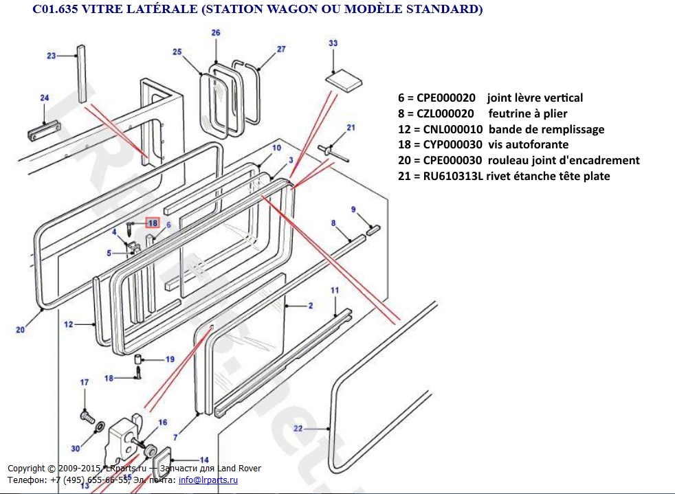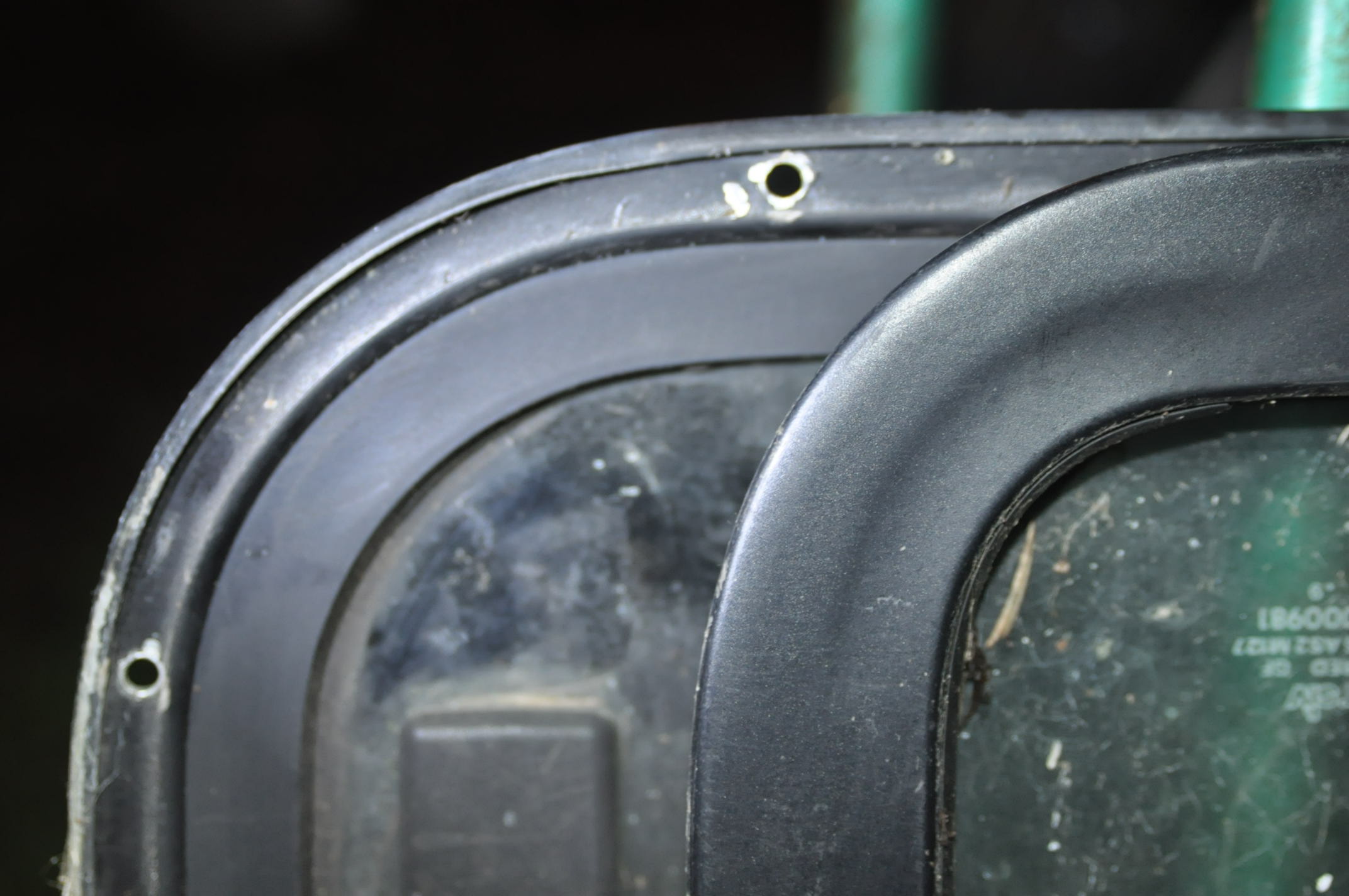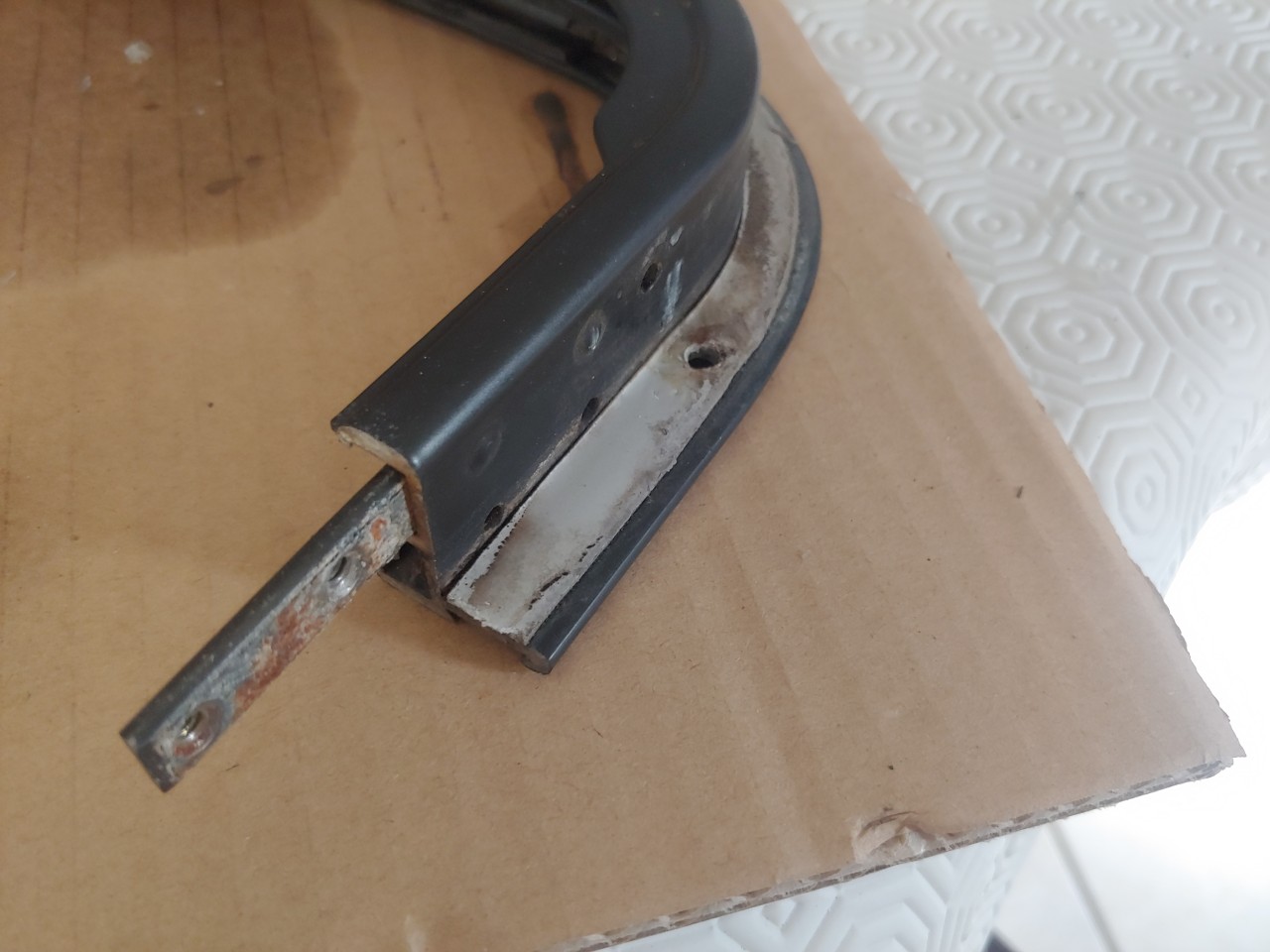 A vérifier que les fuites d'eau à l'intérieur, ne proviennent pas d'entre le bâti riveté ou collé et la tôle du flanc de caisse, car sur les bâtis des TD5, il y a un rebord intérieur plus large qui fait office de gouttière qui limite bien mieux les fuites aux glissières que sur les modèles anciens. Il faut veiller au trous d’évacuation d'eau et s'assurer qu'ils ne sont pas bouchés, on les voit sur les photos 2 et 3. Les quelques références nécessaires pour une remise en état. Souvent le petit joint feutre vendu au mètre que l'on repli, suffit à éviter la petite vibration désagréable à l'oreille de la partie coulissante de la vitre arrière. A+