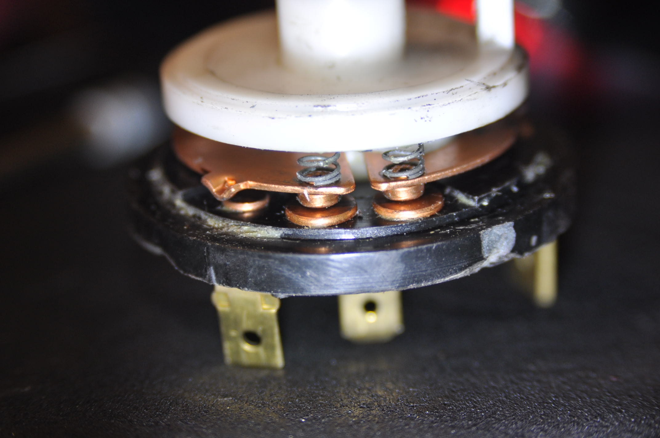 J'ai redémonté ce midi au boulot (j'ai réussi a y aller sans aucun soucis), et je me suis rendu compte qu'à la place du gros blanc sur tes photos, j'ai les 2 petits blanc/noir, et a la place des 2 blanc/noir, j'ai un gros blanc, et un petit blanc, mais celui-la a été rajouté, ça se voit, il est sur une cosse avec repiquage. J'ai tout nettoyé, gratté et tamponné de KF-Contact, ainsi qu'une bonne aspersion dans les cosses.