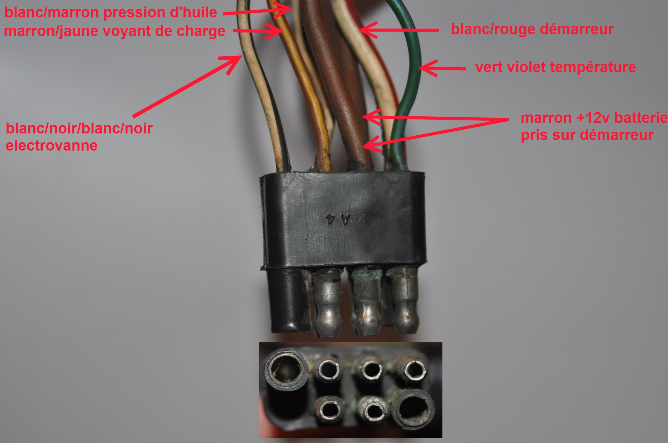 De l'autre coté, il va sur un connecteur compartiment moteur, sur une embase femelle à coté du fil du voyant de charge marron liseré jaune. Mais effectivement, comment se fait-il que cela démarre si l'on coupe l’électrovanne pendant la phase de lancement du démarreur.