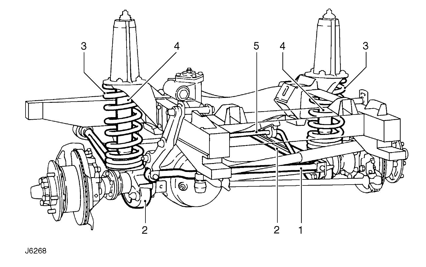 Si tu réhausses la suspension sans changer les tirants (pièces n°2), tu diminues l'angle de chasse, et par voie de conséquence tu réduis la "chasse" le paramètre "d'auto-stabilité" de la voiture qui devient instable.