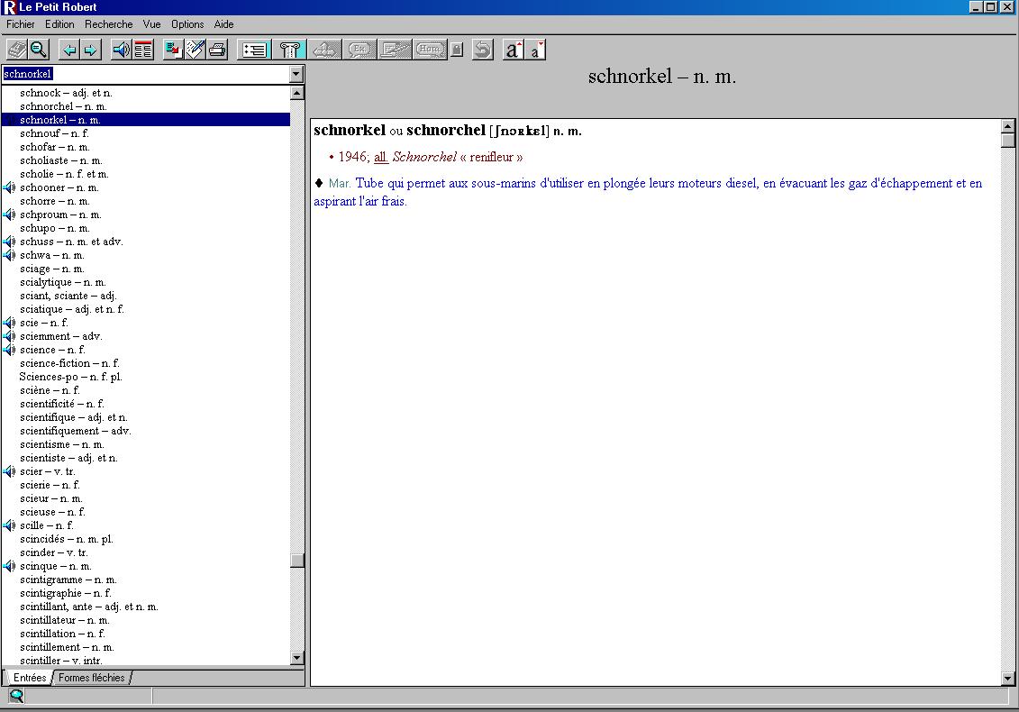 - 1985 : Robert, cédant à la facilité, admet schnorchel ou schnorkel