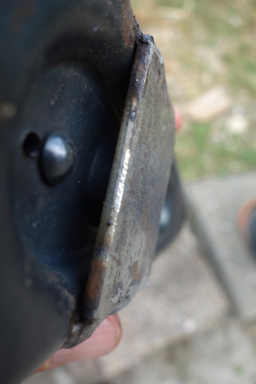 Je préfère a minima une rondelle épaisse avec deux cotés biseautés pour épouser les cotés de la fourchette, et bien reprendre le centre à la soudure aussi: