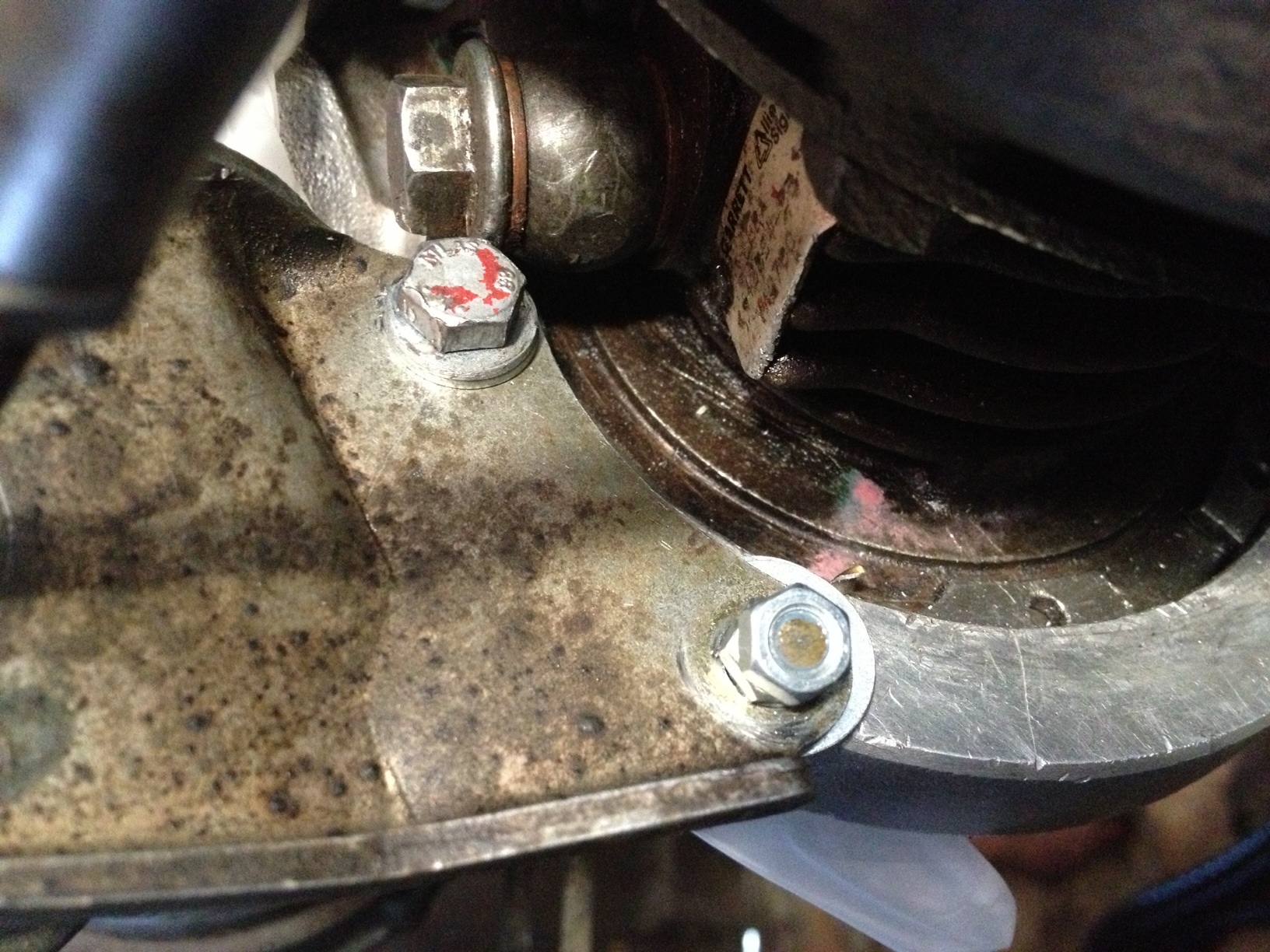Voici la fameuse vis cassé, j'ai coupé la tête puis mis écrou et contre écrou , j'ai régler l'inclinaison de ma tige de westagate ( pour la centrer) avec les rondelle en dessous 3 d'un côté et 4 de l'autre , si ça peut aider...
