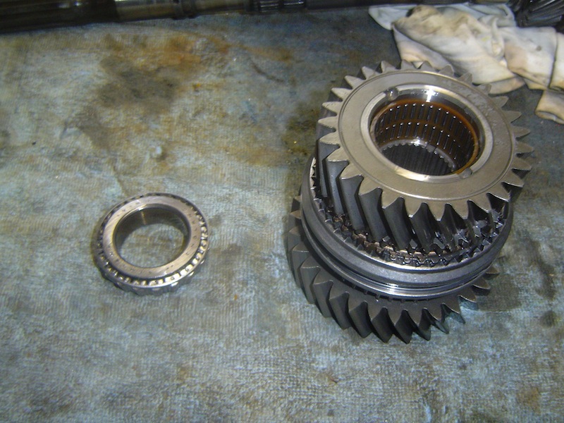 On récupère le roulement, les pignons de 1° et 2° et l'ensemble de synchro de 1°/2°.