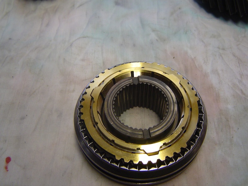 Ensuite on pose l'ensemble sur les bagues de synchro en s'assurant de bien faire correspondre les encoches. Ici le montage sans l'anneau de commande.