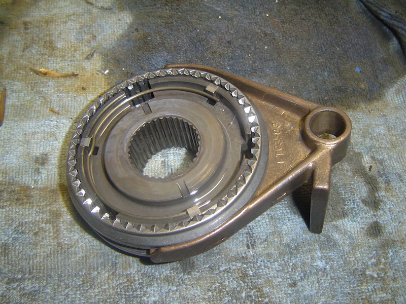 Ensuite on pose l'ensemble sur les bagues de synchro en s'assurant de bien faire correspondre les encoches. Ici le montage sans l'anneau de commande.