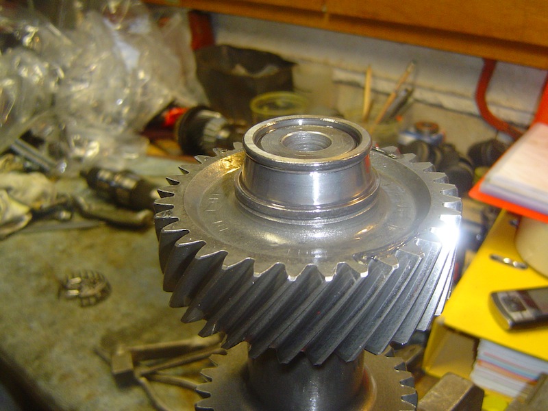 On récupère le roulement, les pignons de 1° et 2° et l'ensemble de synchro de 1°/2°.