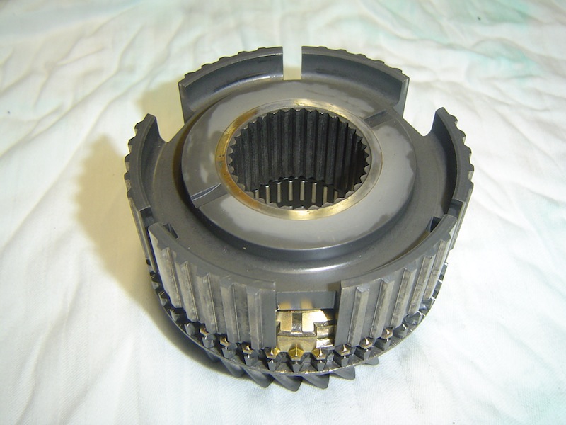 Ensuite on pose l'ensemble sur les bagues de synchro en s'assurant de bien faire correspondre les encoches. Ici le montage sans l'anneau de commande.