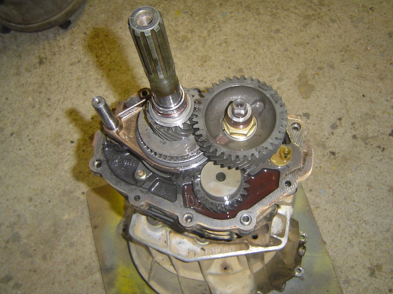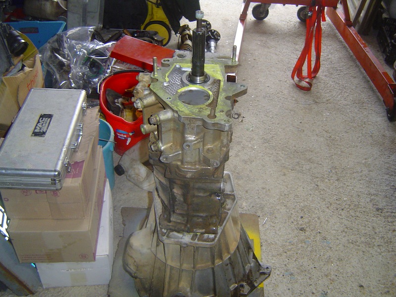 On attrape tout et on sort tout l'ensemble en même temps. L'arbre d'entrée peut venir avec, mais il est préférable de le sortir après car il ne reste collé à l'arbre de sortie que par la bague de synchro de 4° d'ou un risque de chute.