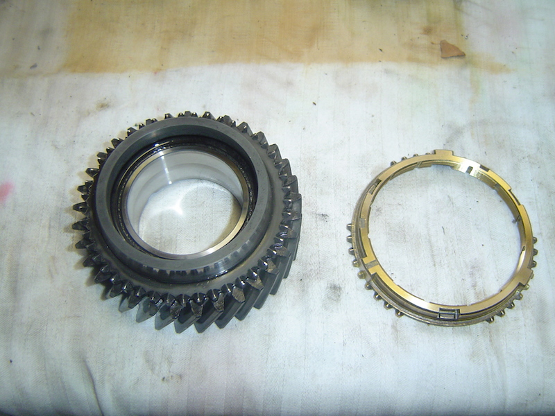 On récupère le roulement, les pignons de 1° et 2° et l'ensemble de synchro de 1°/2°.