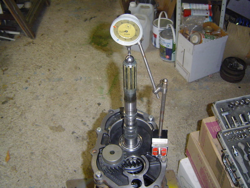 On vérifie le jeu entre l'épaulement de l'arbre de sortie et le pignon de 3°. Il doit être compris entre 0,11 et 0,21 mm.