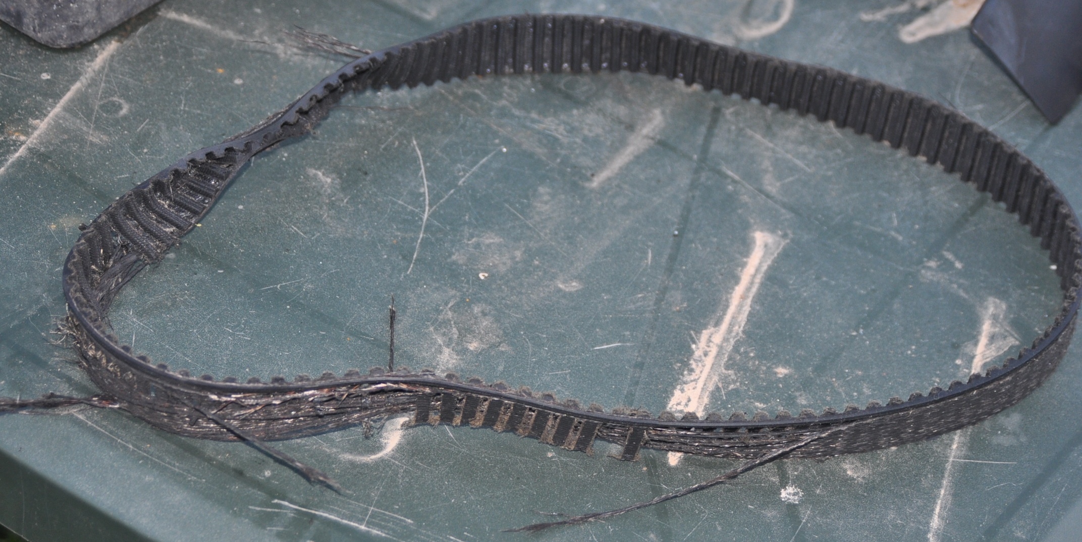 Vu l'état de la courroie, nul doute que le moteur s'est soudainement arrêté, les pistons faisant des bisous aux soupapes
