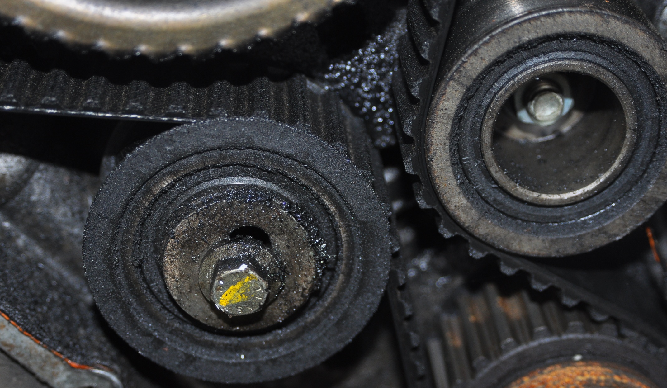 Le pignon décalé par deux joint au l'un d'un a fait que la courroie s'est déplacée vers le carter extérieur et s'est usé contre le carter, par contre l'un des galets.
