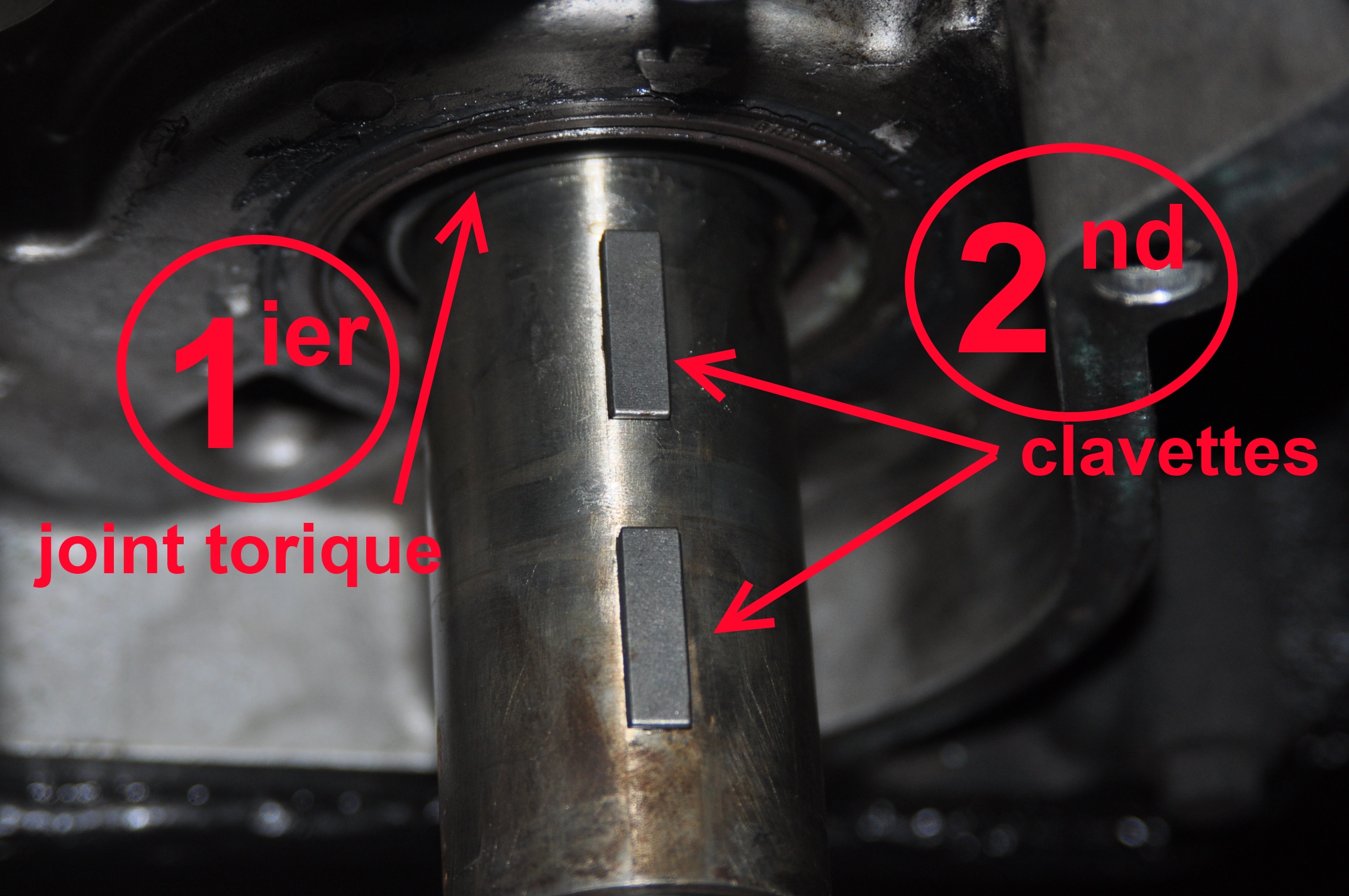 R45) C'est très serré comme on peut le voir, si il manque une clavette on s'en aperçois tout de suite, on est obligé de chanstiquer de gauche de droite la poulie pour l'enfiler, puis quand on atteint la clavette, on vise juste et on pousse droit, il n'y a rien qui peut sauter à ce niveau, coincé peut-être si les clavettes sont mal mises.phelippeau patrice a écrit :est il possible apres ce test et après remontage du couvercle ?