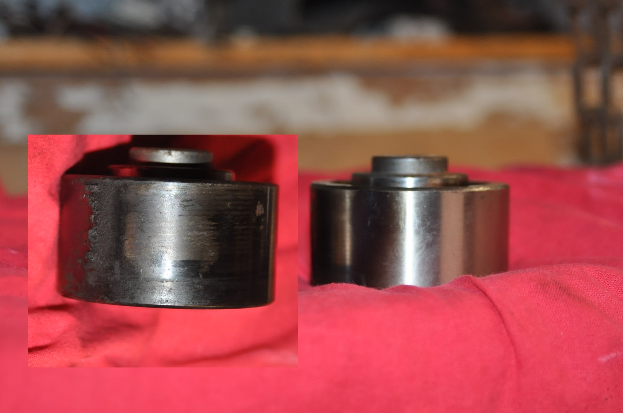 Dans l'exemple cité plus haut photo R35), c'était également un professionnel qui avait effectué le montage d'un galet fixe nouveau modèle avec épaulement plus la rondelle qu'il avait conservé,