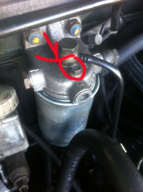 Pour la pompe de gavage ce a ete assez simple mais j ai recuperer les boulont sur l ancienne et j ai coupe en coupant les olives a la scie..L ancienne pompe marchais mais n avait pas de joint..Ensuite j ai vider l air en devissant au dessus du filtre a diesel un boulont ( voir foto) puis pompage de la pompe a diesel et aussi par prudence j ai deviser pendant que le moteur tourne chaque boulont au dessus des injecters l un apres l autre..