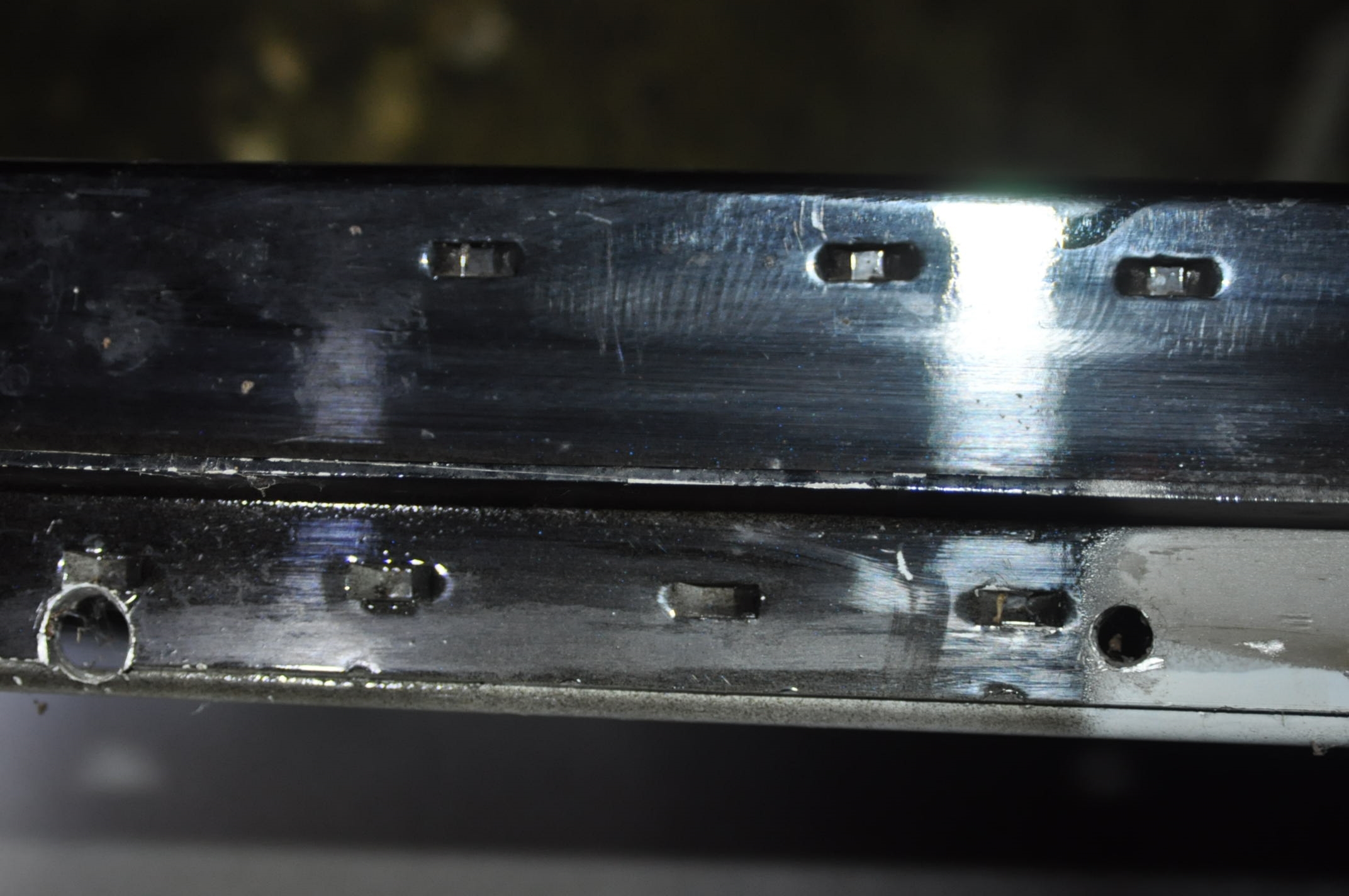 1) Réglet de renfort 2) Renfort a la jonction des deux toits. 3) Trou pas d'origine, pour la fixation d'une poignée de maintien. 4) Les anciennes gouttières rivetées étaient galvanisées et non compartimentées. Si besoin d'autre photo, c'est possible.