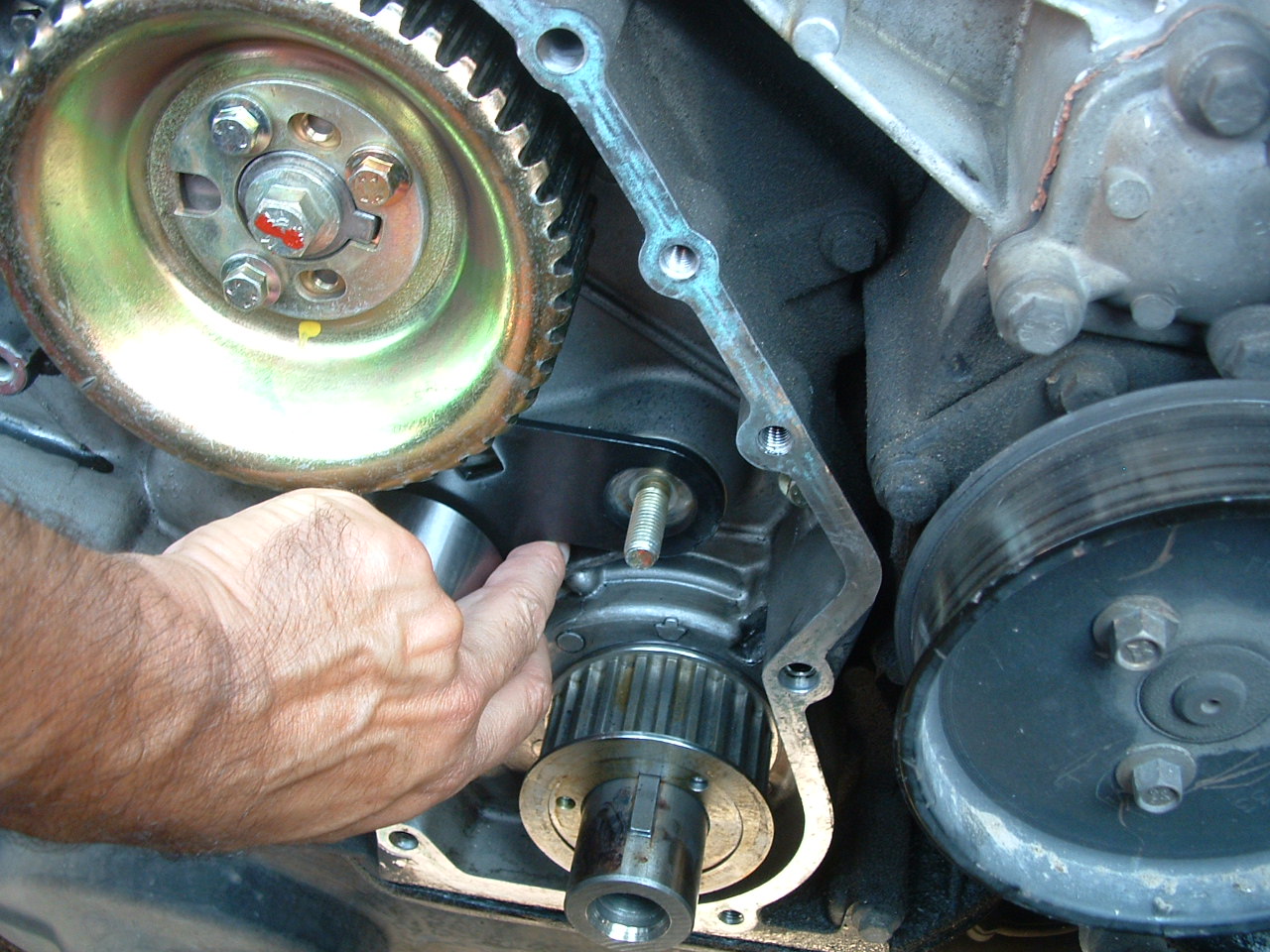 Ensuite démontage du carter distri et là je retrouve ma courroie enroulée autour du pignon de vilo.