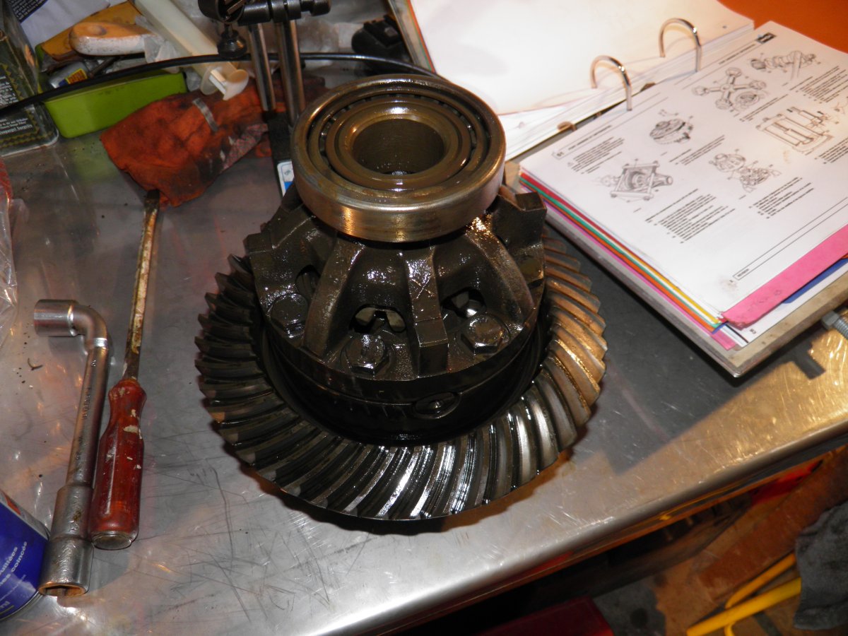 Voici le corps de pont vide. Et le différentiel sur l'établi. Emporté par mon élan, j'ai tombé dans la foulée le pignon .