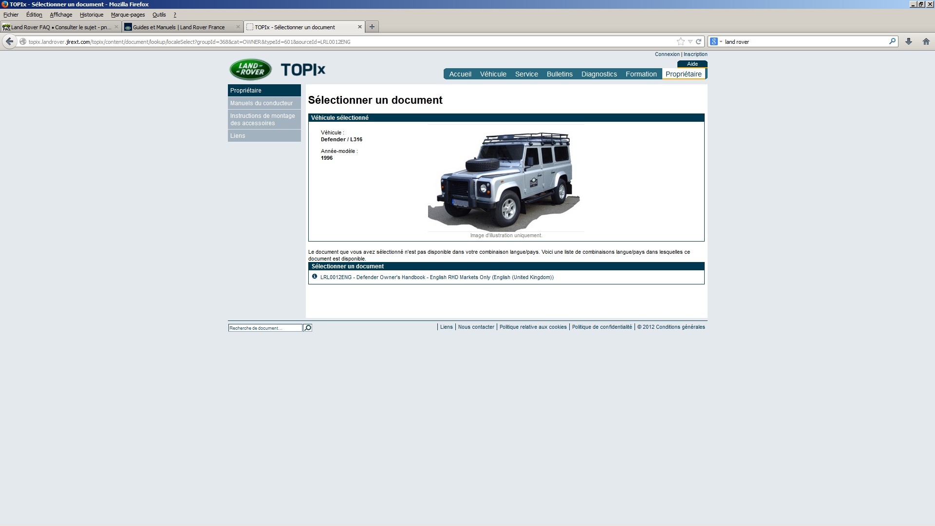 Sur le site (Land Rover TOPIx), après avoir choisi ton véhicule, es tu bien allé dans "Propiétaire" (dans la barre en haut à droite) ?