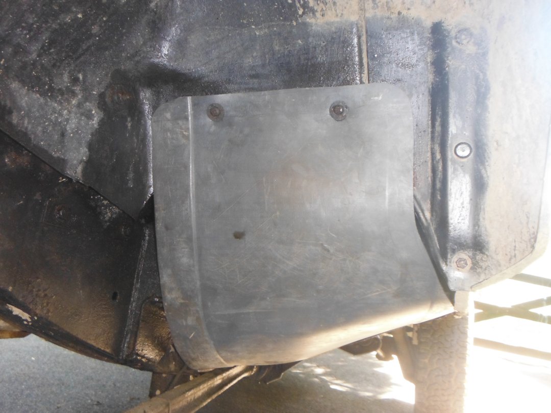 J'ai, par la suite, taillé dans un bac plastique de jardinerie 2 panneaux pour servir de déflecteur dans le prolongement du passage de roue de manière à protéger la zone. Ils sont maintenus par les 2 grosse vis cruciforme en bas à l'arrière du passage de roue. Cette protection est d'origine sur le Td5 avec le doublage du passage de roue qui emprisonne l'isolant phonique. Je ne pense pas que le 300 Tdi et les versions antérieures en soient équipés et c'est bien dommage.