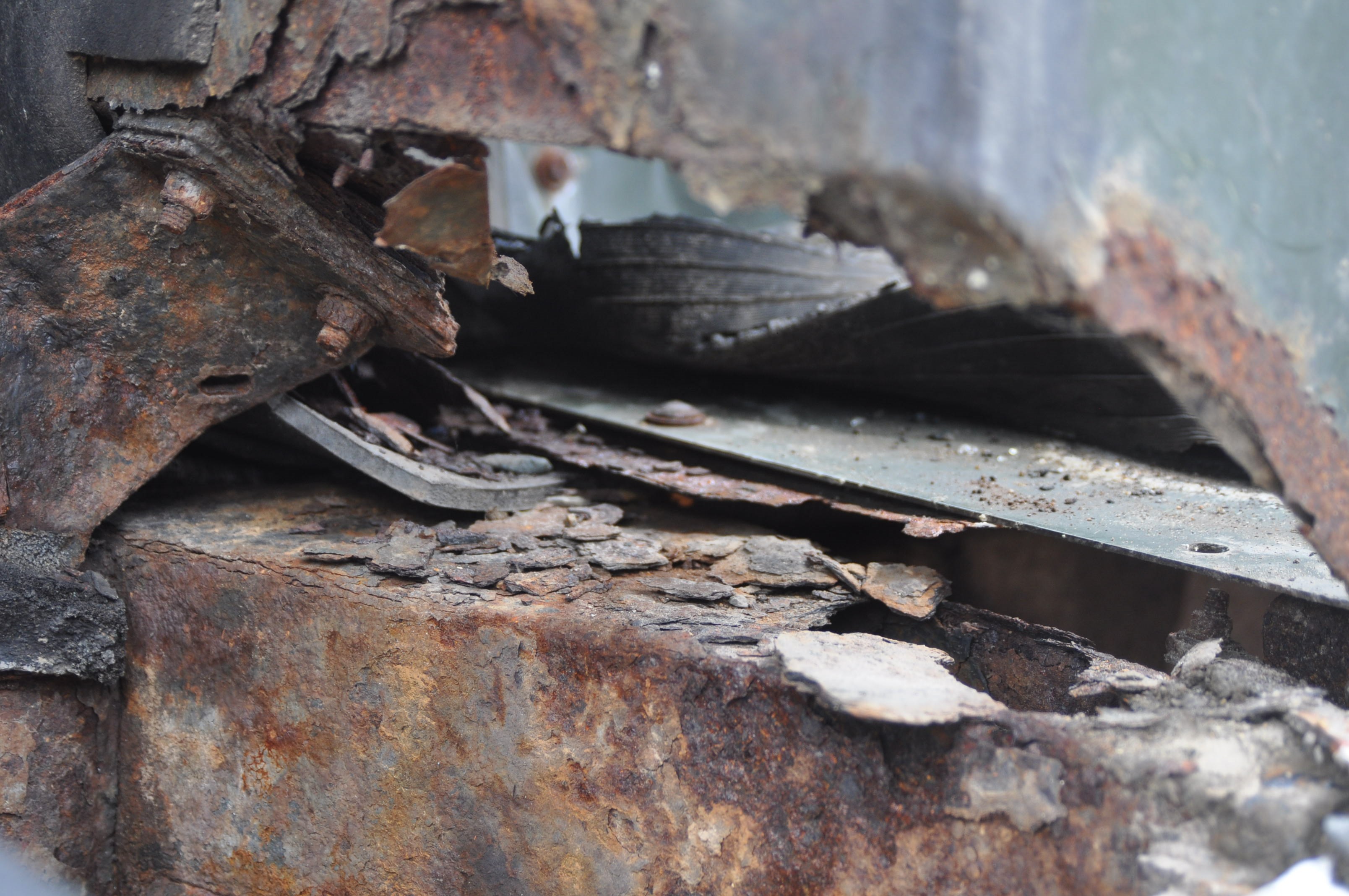 Et a des endroits, où rien n'est visible (entre deux tôles), sauf quand cela commence à percer à l'intérieur.
