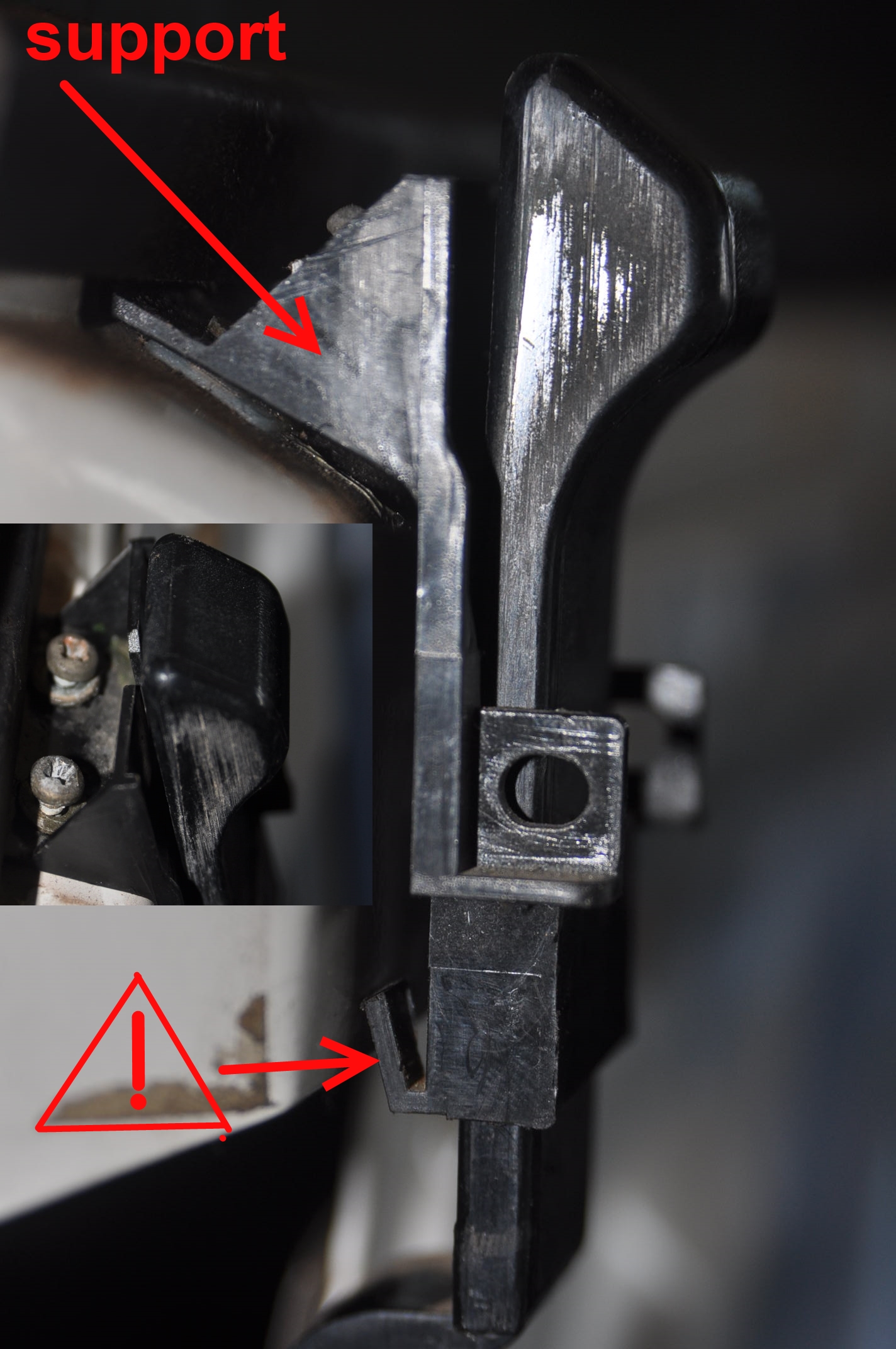 Au passage une remarque sur le démontage du loquet sans rien casser; ni tordre; ni arracher; ni criser... Il faut démonter les deux petites vis cruciformes, si possible avec un tournevis aimanté. Bien repositionner la languette du support glissière du loquet au remontage. Il est sur à 99% que le support de loquet casse si on tente de sortir la tringlerie du loquet sans démonter les deux petites vis. La premier fois que l'on intervient a ce niveau là ces deux petites vis ne sautent pas aux yeux et ne sont pas évidente à voir, ou a saisir leur intérêt.
