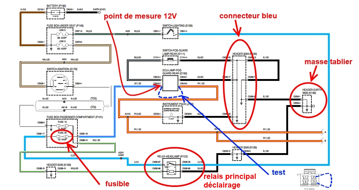 je viens de vérifier mon éclairage sur mon def td5 2005 ! et la ! plus d'anti brouillard AR