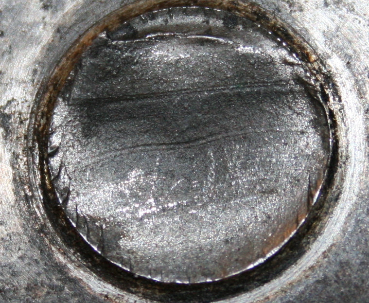 Juste en dessous on pourrait croire à une piste de roulement avec du micro écaillage...mais non, cela ne peut pas être la bague intérieure d'un roulement à rouleaux conique.