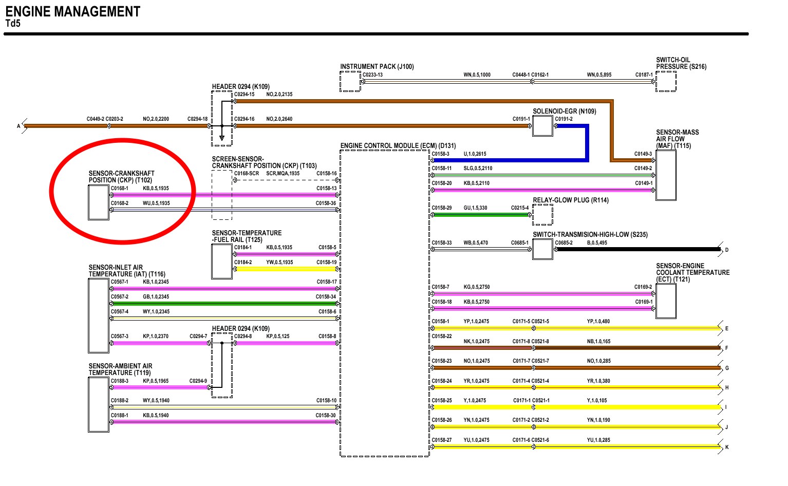 Ensuite, ton land malgré son année précoce pour un Td5, est déjà a cheval sur deux schémas, pour faire simple encore les tout premier Td5 avait la boite à fusibles dans le compartiment moteur, toi tu l'as sous le siège passager, mais cela ne change pas grand chose pour la compréhension des schémas.