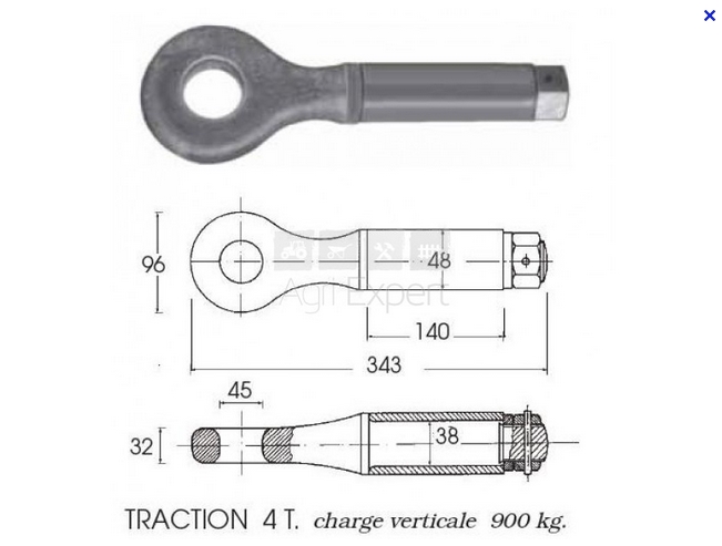 Note que ce type de chape est incompatible avec les remorques à anneau fixe, puisqu'il n'y a aucune possibilité de rotation, ni d'un côté ni de l'autre.