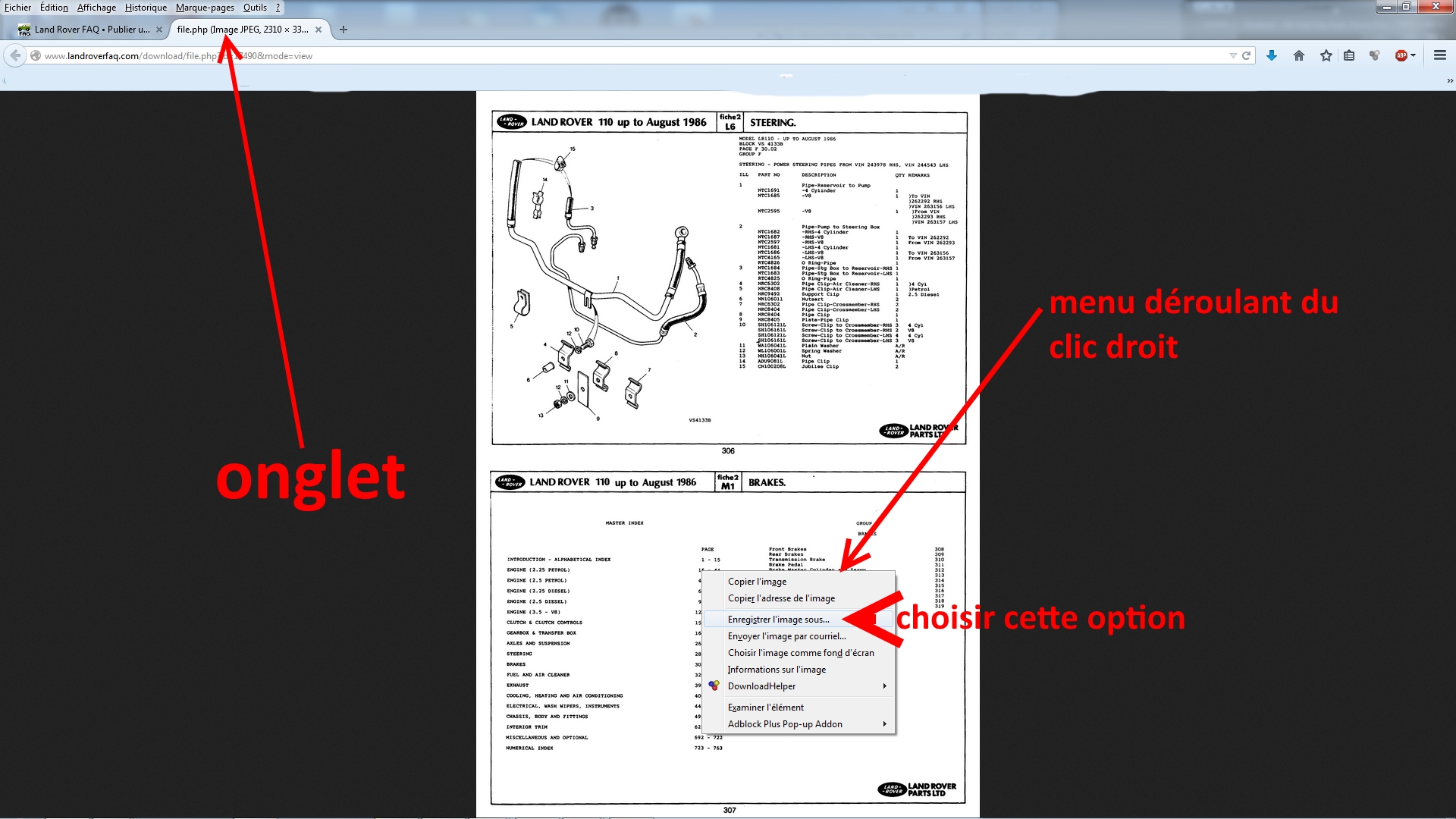 Il te suffit de faire un clic droit dessus et de choisir l'option enregistré l'image sous: Ensuite, tu as une fenêtre de l'explorateur qui s'ouvre, en te demandant où tu veux enregistrer l'image. Tu crées un dossier DA que tu ranges dans un fichier land, et tu y mets les documents récupérés sur la faq ou ailleurs. Mais bon, il ne faut pas que tu achètes les pièces une par une, il faut lieux récupérer un ensemble le plus complet possible d'occasion, et éventuellement racheter quelques joints ou raccord neufs.