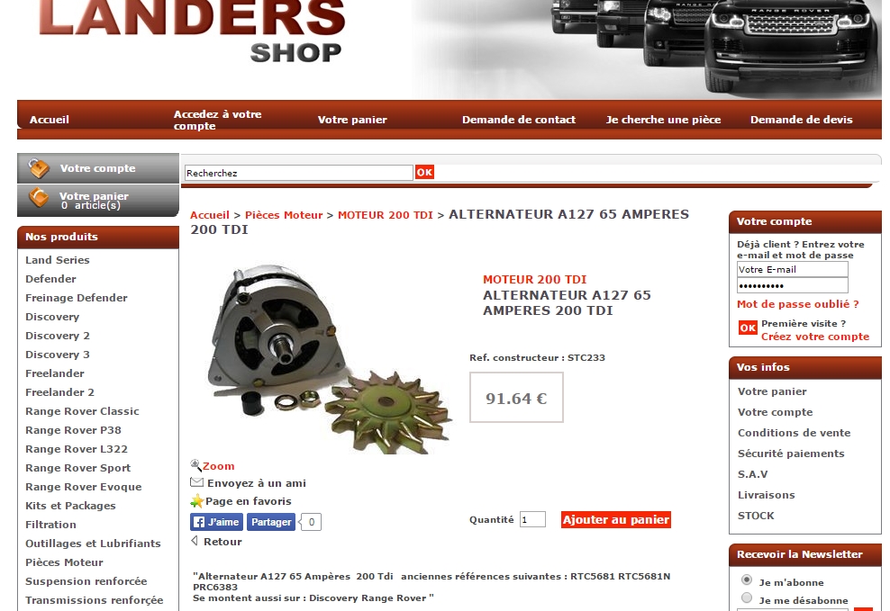 Un alternateur de 200tdi standard A127 65Ampère c'est une centaine d'euro en échange standard, et cela pèse 6kg donc frais de port dans les deux sens si tu fais un échange standard.