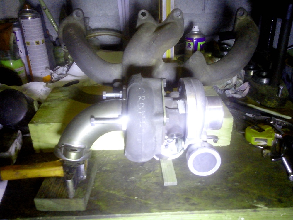 Le turbo de la Croma est parfaitement sec très faible jeu avec une bride comportant 4 trous lisses qui vont pile poil dans le collecteur du 200 c'est celui que je monterai.