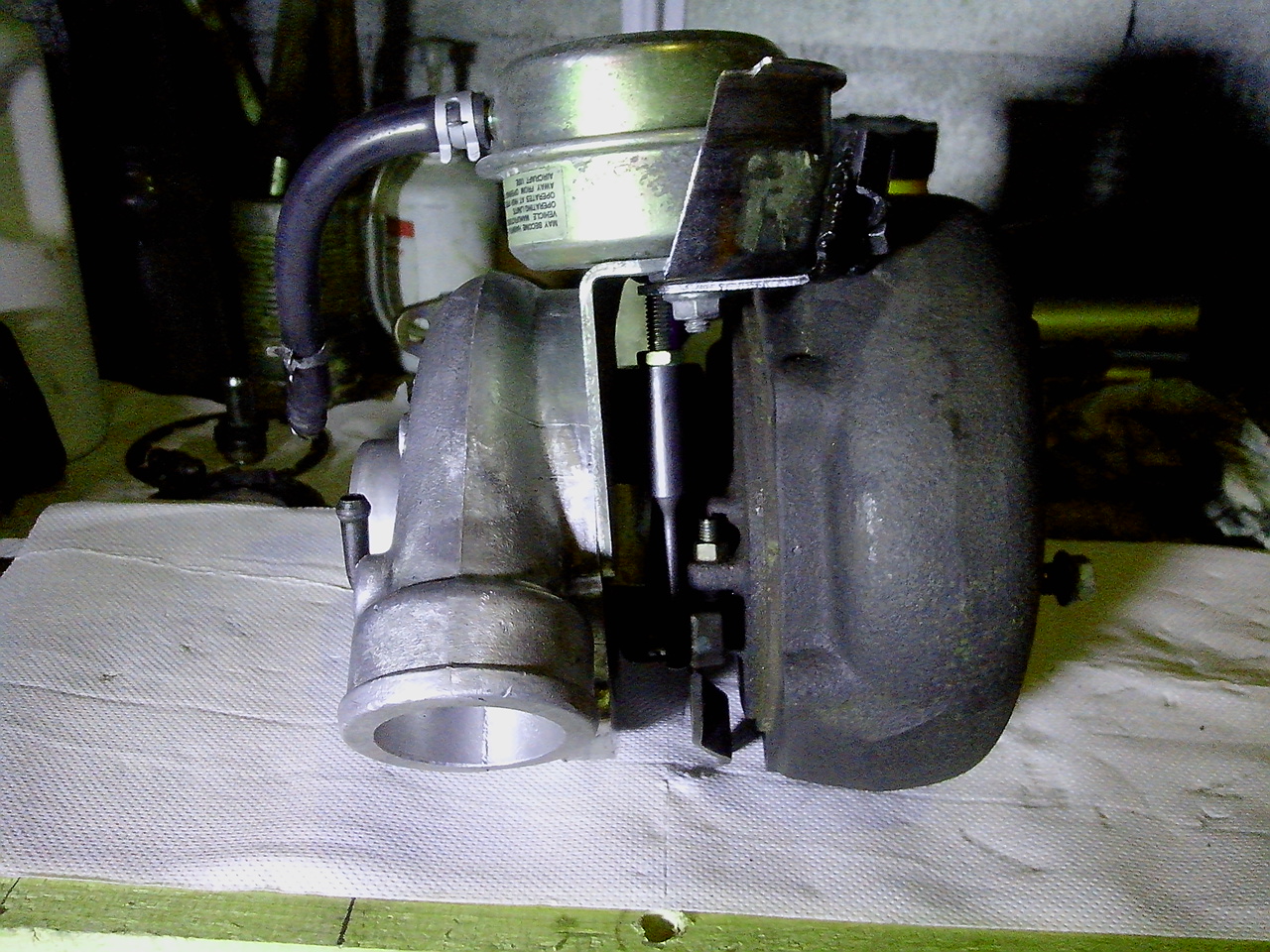 le poumon de commande est en dessous mais peut-être un peu trop prés du retour d'huile...car n'oublions pas que la tige sort du poumon....GV pilotée par la pression du turbo.