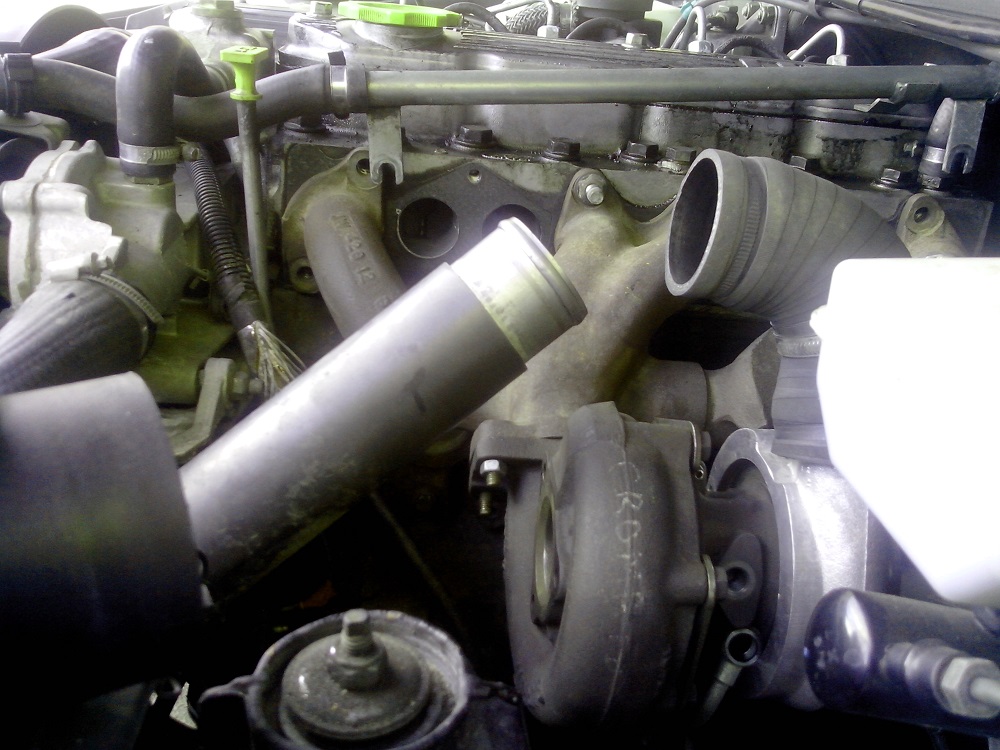 la sortie du compresseur est un peu trop verticale, ça ferait cheminer la durite au dessus du turbo
