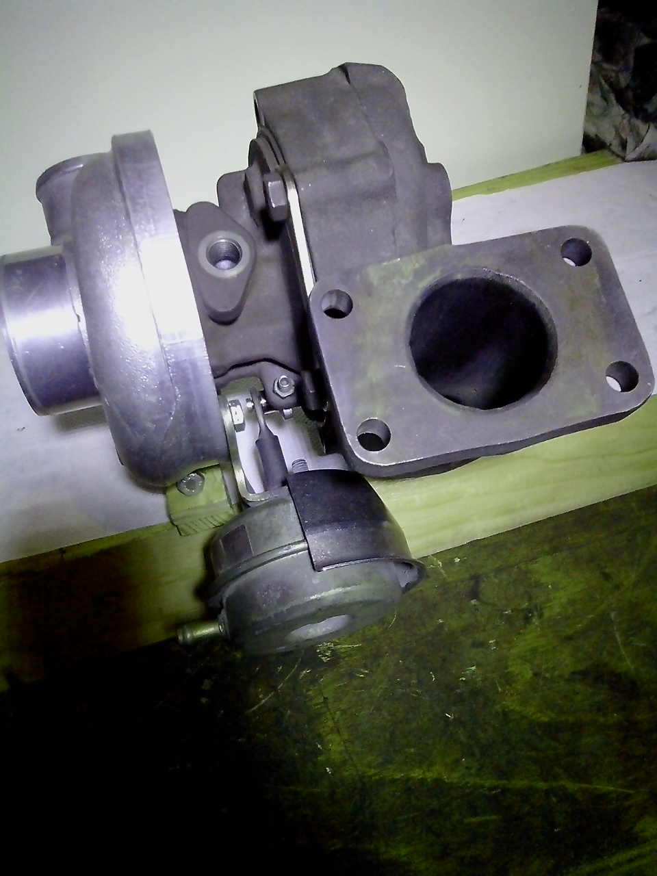 Le turbo de la Croma est parfaitement sec très faible jeu avec une bride comportant 4 trous lisses qui vont pile poil dans le collecteur du 200 c'est celui que je monterai.