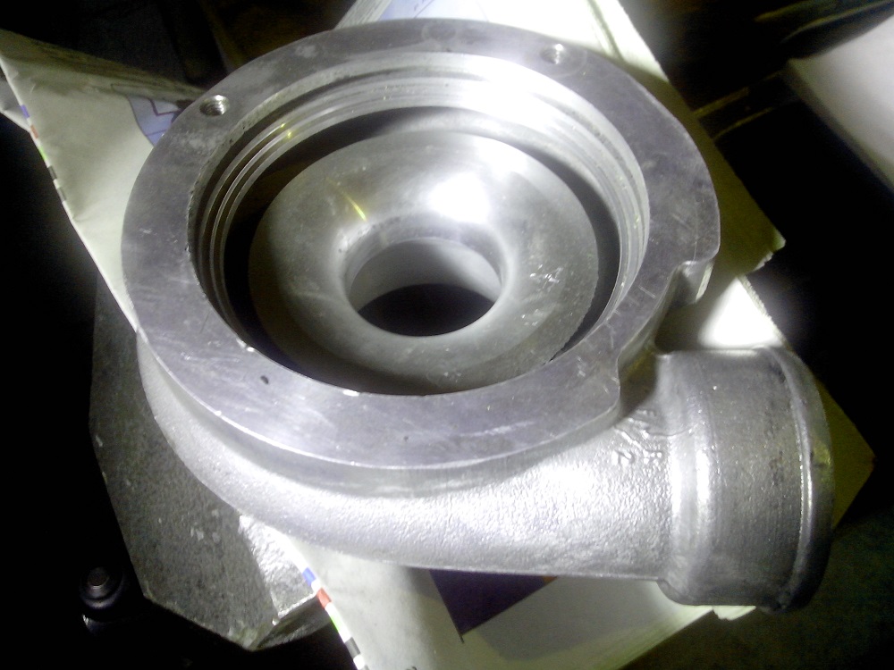 après perçage/taraudage de plusieurs trous de fixations supplémentaires du poumon sur le corps froid, je gagne environ 30° d'angle pour la sortie du compresseur. C"est impeccable!
