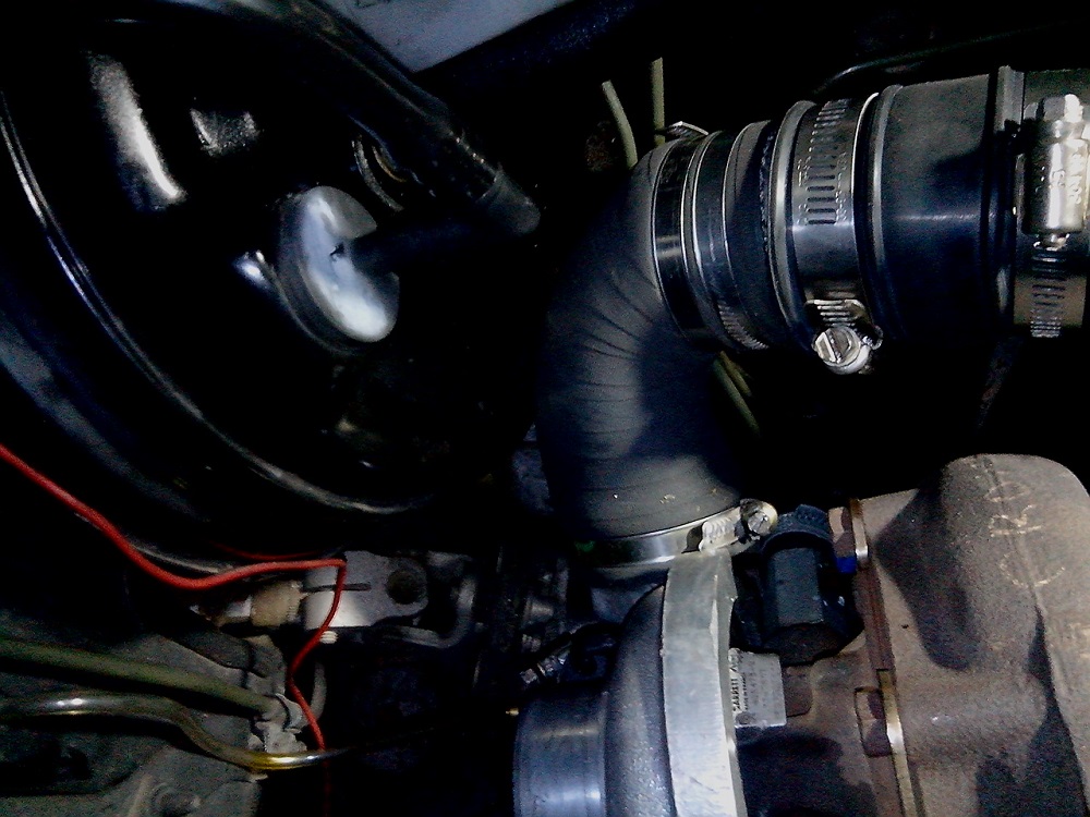 J'ai légèrement réorienté la durite d'origine (qui je le reprécise est montée à l'envers par rapport au montage d'origine) côté intercooler.