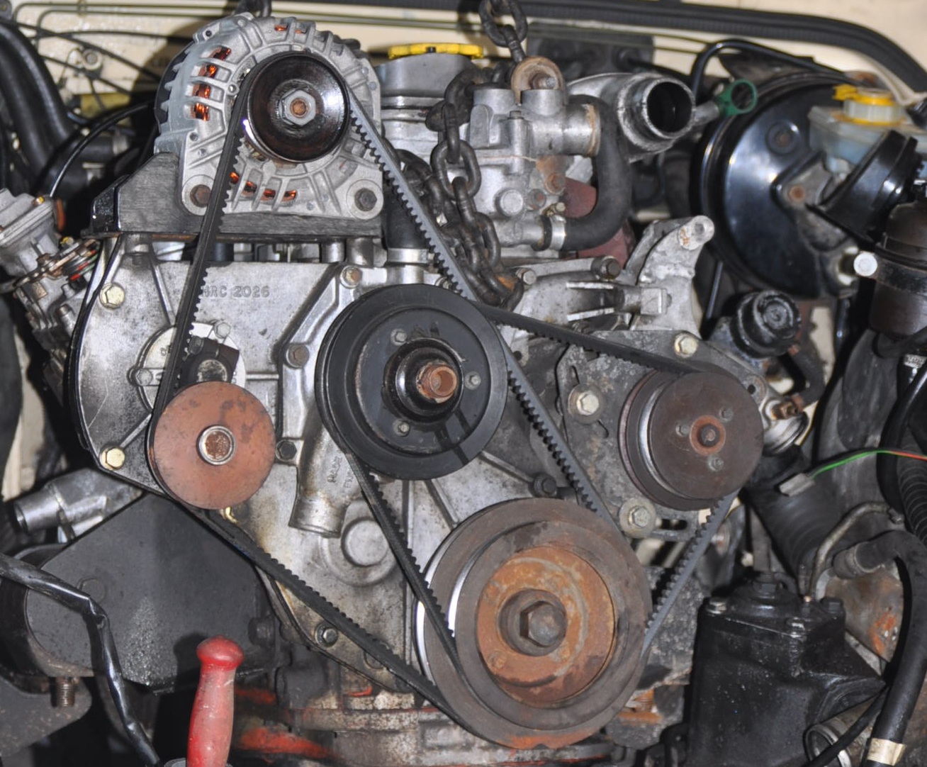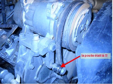 Aprés une sortie "musclée" dans la boue ce weekend, et des couinement des courroies d'accessoires, je me suis aperçue au moment de la toilette de mon RR classic 200 TDI de 1993 que la poulie tendeuse de la courroie de clim avait disparue...!!!! Il ne reste plus que l'axe et le chemin de billes du roulement....de cette poulie.