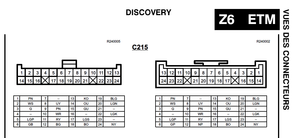 (Info C215: 24-Y: donc connecteur jaune avec 24 fil, sous la colonne de direction)