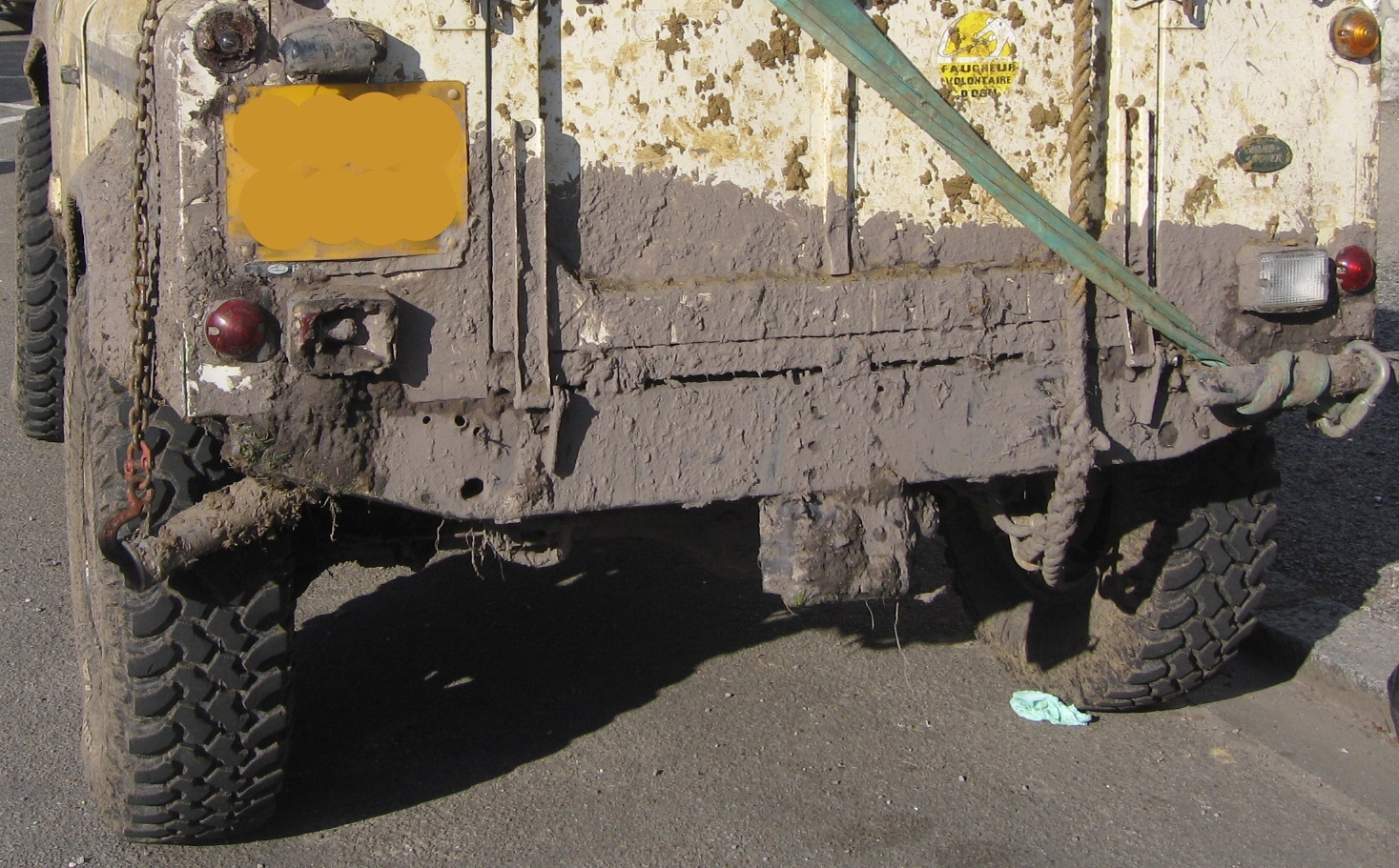 Perso, j'ai ceci quand je vais me balader hors des routes goudronnées: - Une sangle, qui pour l'instant n'a servi qu'à sortir les autres d'un mauvais pas. Mais cela pourrait être un jour moi. Évidement, il faut un deuxième véhicule. Mais en France on trouvera assez facilement un second véhicule, qui peut être le tracteur du paysan de la ferme d'à coté (à plusieurs kilomètres dans certains cas....).