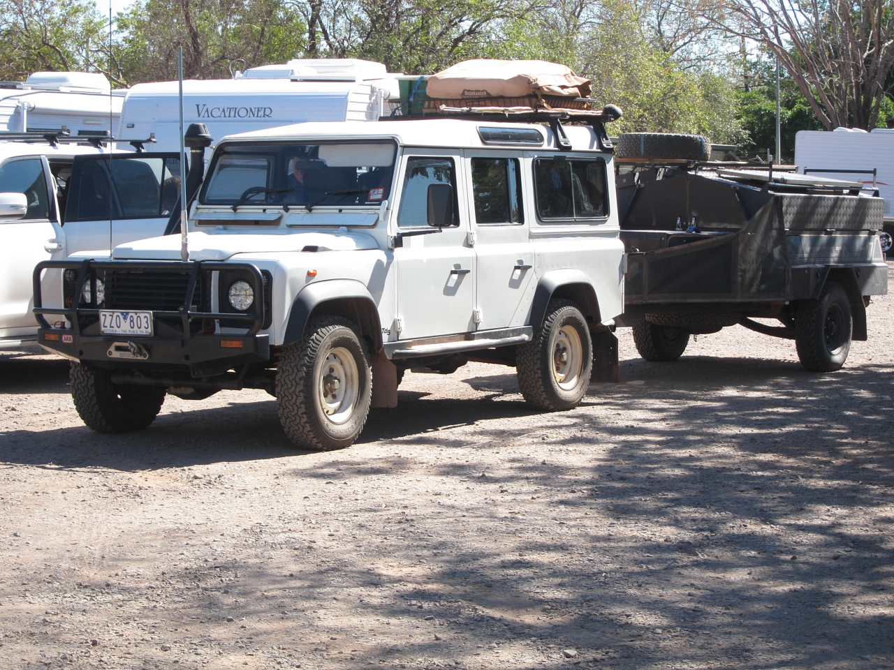 Ensuite une règle de base pour les longs voyages hors goudron avec une remorque : garder le poids de la remorque à 50% du poids maxi autorisé et respectez le poids maxi sur l'attelage du véhicule (75 kg).