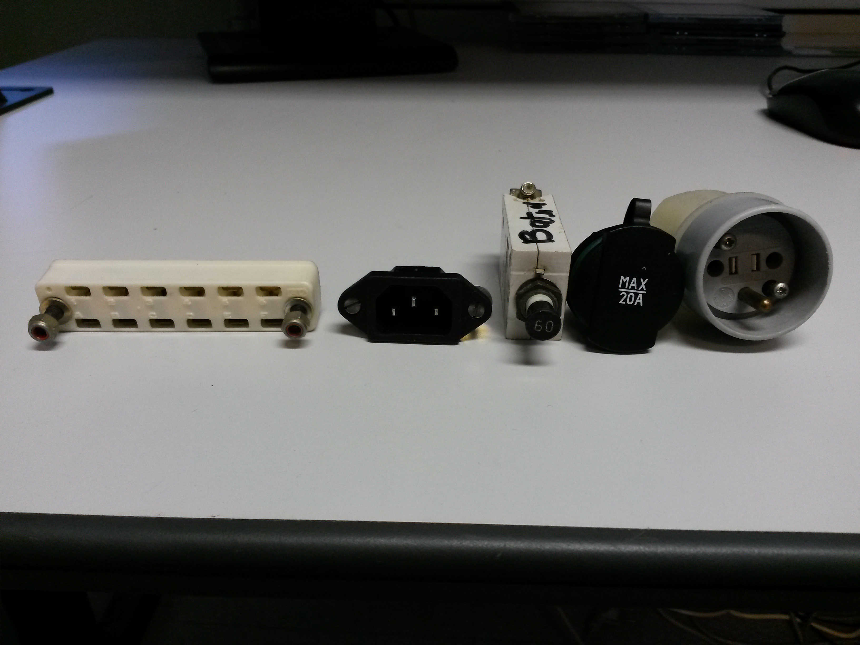 Des prises 220 v récupérées dans de vieux blocs d'alimentation d'ordinateurs.