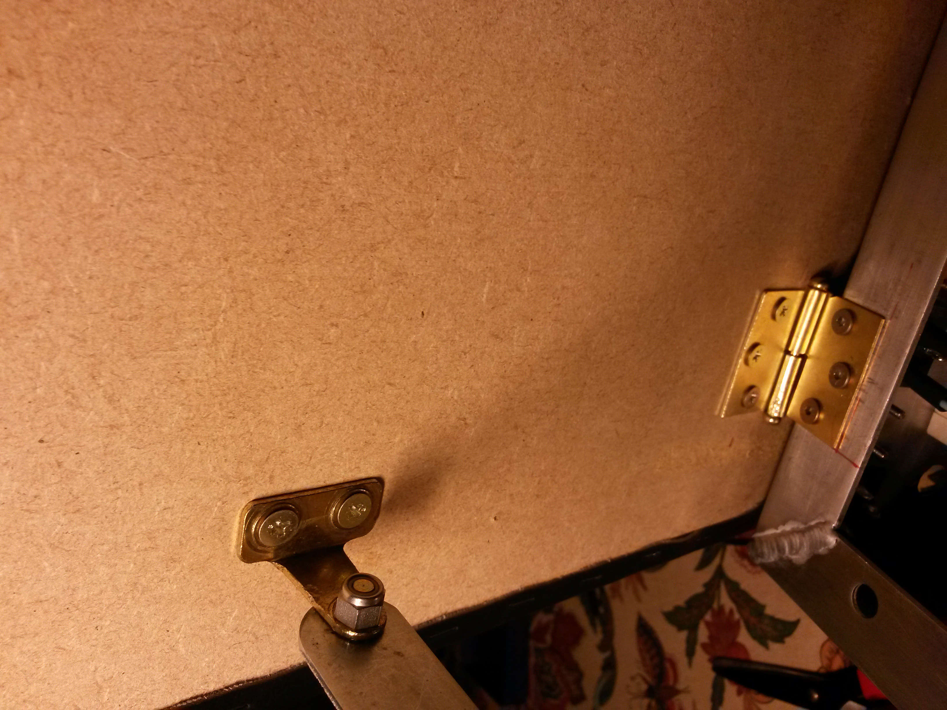 J'ai fixé sur cette réhausse; un cubby-box à l'aide de charnières.