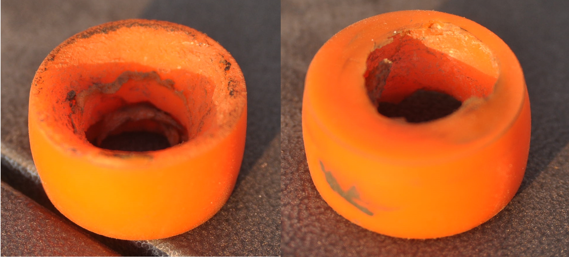 Une bague polybush d'amortisseur, sans gras, juste avec du sable, en moins de 400km. Donc imagine avec du gras qui retient en prime les grains de sable. Effet de la Dexron (sans T pour nanard)