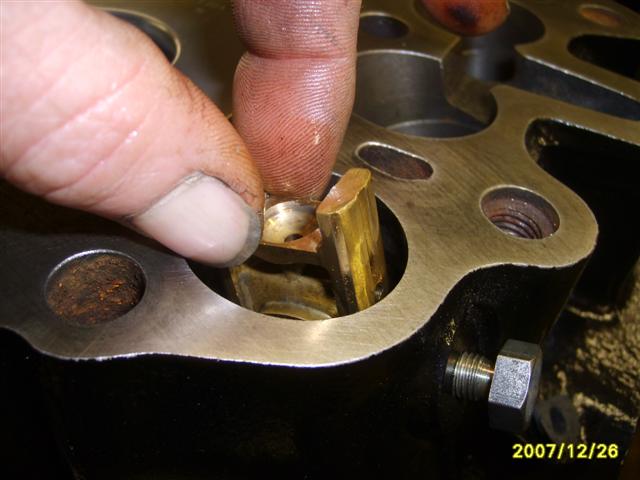 Il n'est pas dit que si on enlève cette vis, que ce salopard de guide du poussoir bronze ne descende pas de quelques mm de trop, ce qui empêcherait de remettre correctement la pointe de la vis de butée dans son trou, sans être obligé de démonter le cache culbuteurs, pour faire légèrement remonter celui çi avec une baquette de soudure coudée à son extrémité, pour le faire remonter, ce qui serait un moindre mal, car peut être qu'il faudrait faire sauter la rampe à cause des contraintes sur le poussoir bronze et le galet par la tiges de culbuteur, mais je ne pense pas. Le poussoir bronze coulisse librement dans son guide, et lorsque l'on est sur le dos de la came, il n'y a pas de contrainte. J’essaie de te contrôle ça demain.