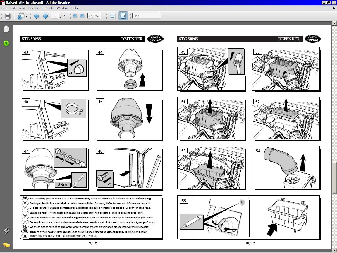 N'oublie pas qu'un schnorkel monté sans joints et certaines modifications ne protégera que contre les poussières, pas contre l'eau dans le cas de traversées de plan d'eau (ou autre) profonds. Mantec, ou LR indiquent bien ce qu'il faut modifier et rendre étanche. Safari est très avare.