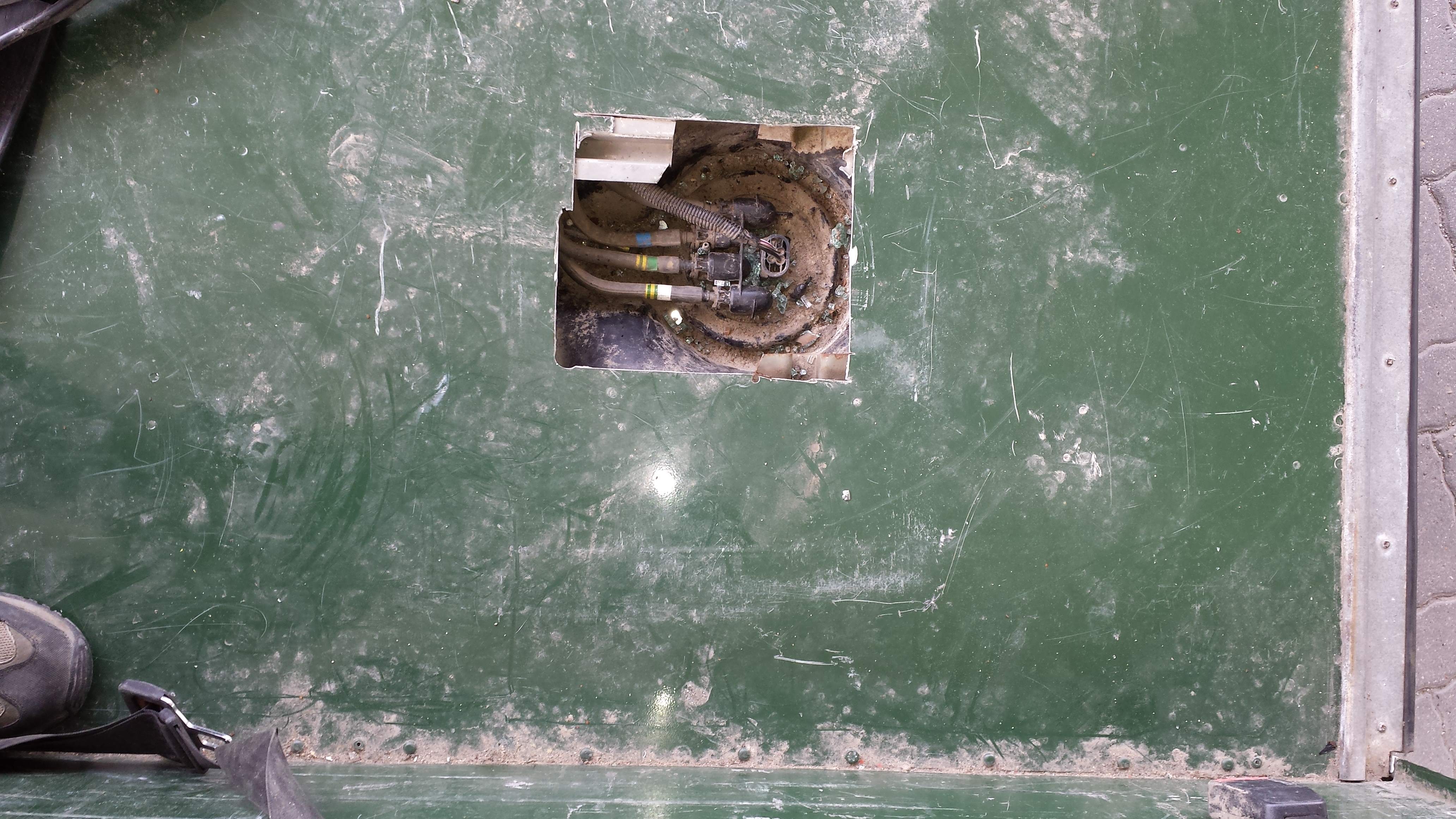Je n'ai pas découper les renfort, la trappe ne me sert qu'a déconnecter la pompe tranquillement pour ensuite tomber le réservoir sans aucun problème.