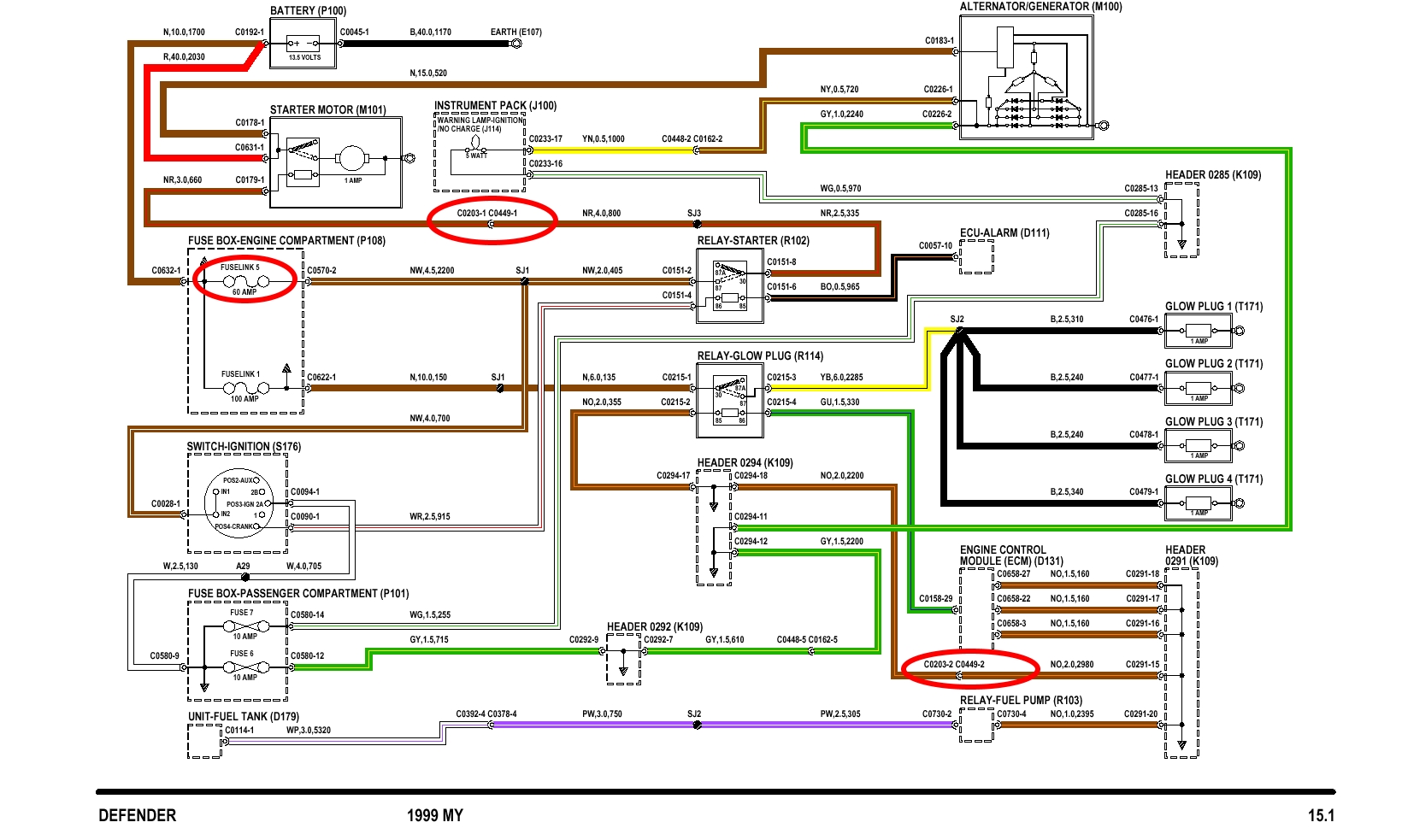 3) On va rapatrier le schéma de charge et démarrage du Td5 ou apparait le relais du démarreur R102 pour tirer cette affaire au claire:
